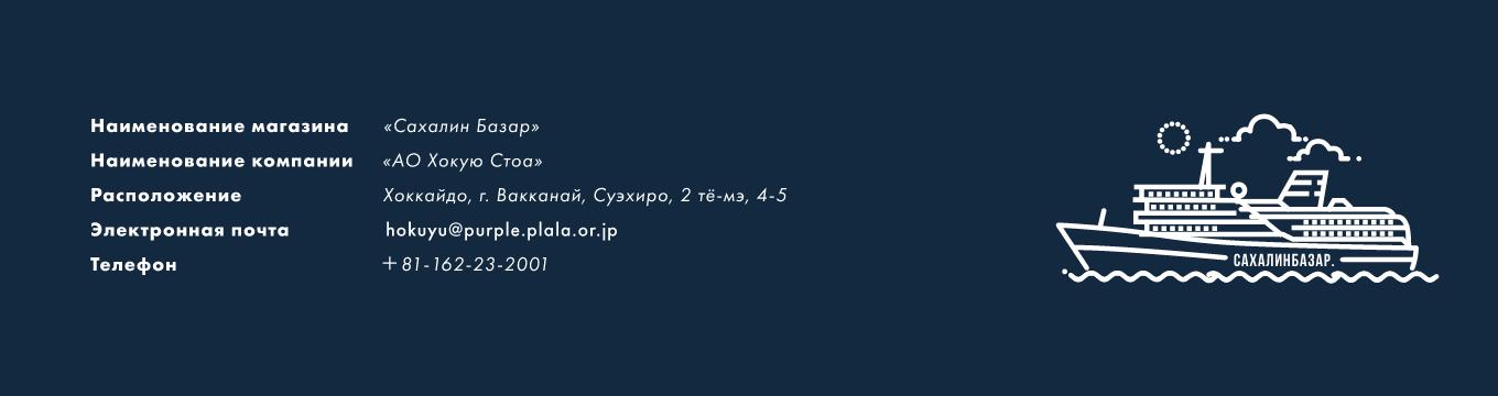 Специализированный магазин, ориентированный на россиян, открылся в Вакканае около 30 лет назад. Здесь представлен широкий ассортимент спиртосодержащих продуктов, хозтоваров и прочих товаров, которые хотят приобрести россияне. Мы разработали способ, благодаря которому можно покупать японскую продукцию, находясь в России. Пожалуйста, ознакомьтесь с информацией в каталоге о том, как сделать заказ.