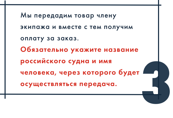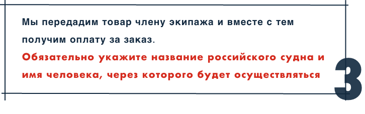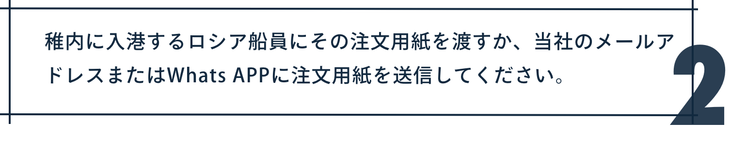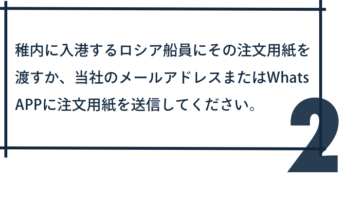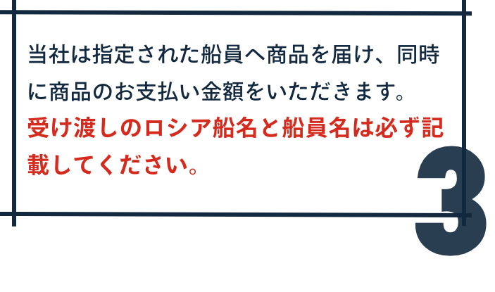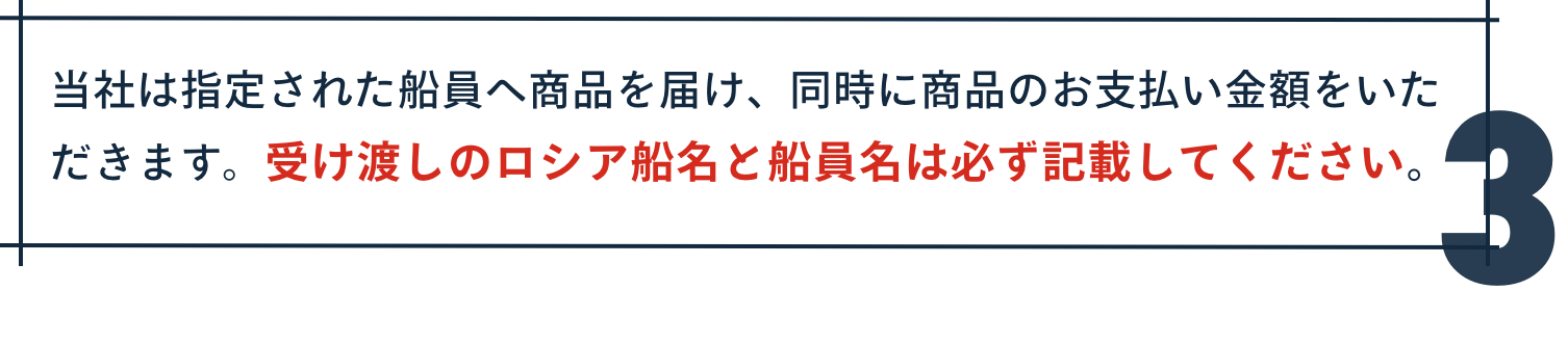 ※受け渡しのロシア船名と船員名の記載が無いと配達ができません。